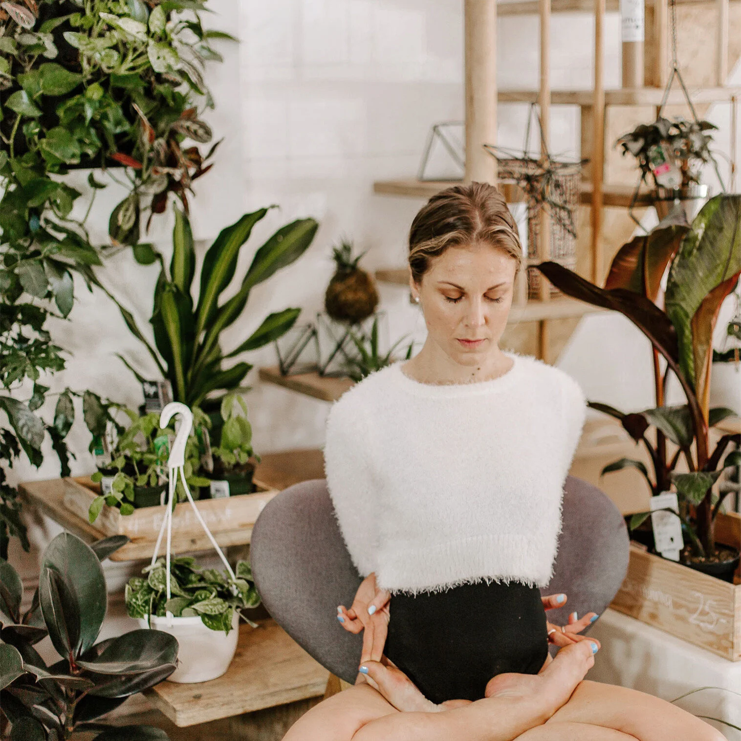 Sit up tall with your sit bones grounded (option to sit on a cushion if you prefer).